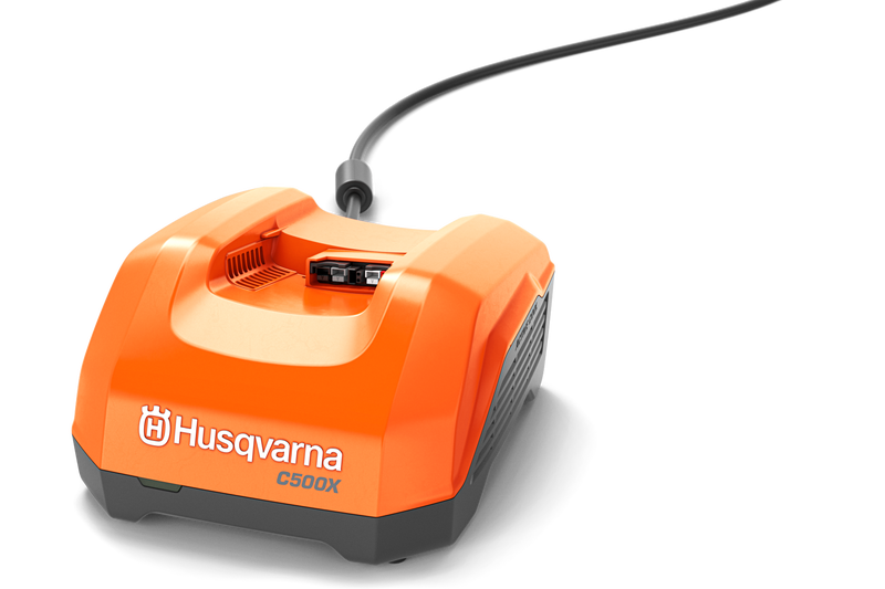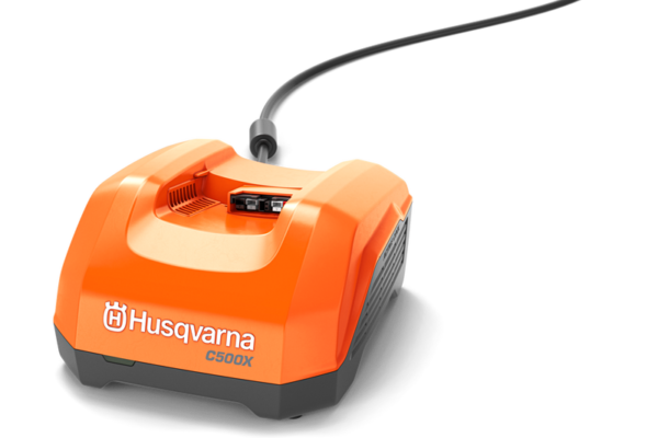 Das Ladegerät Husqvarna C500X ist ein effizientes Schnellladegerät, das für das schnelle Laden von Akkus des flexiblen Husqvarna BLi-X 36V-Akkusystems optimiert ist. Mit 500 W Ladeleistung und ActiveCool, einem aktiven Luftkühlsystem mit integrierten Lüftern, ermöglicht das C500X schnelles Laden ohne zeitraubende Abkühlphasen. Das Ladegerät kann auf dem Schreibtisch oder im Regal aufgestellt oder mit der als Zubehör erhältlichen Wandhalterung einfach an der Wand befestigt werden